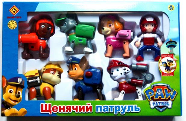 1. 6 фигурок щенков спасателей с рюкзачком трансформером.