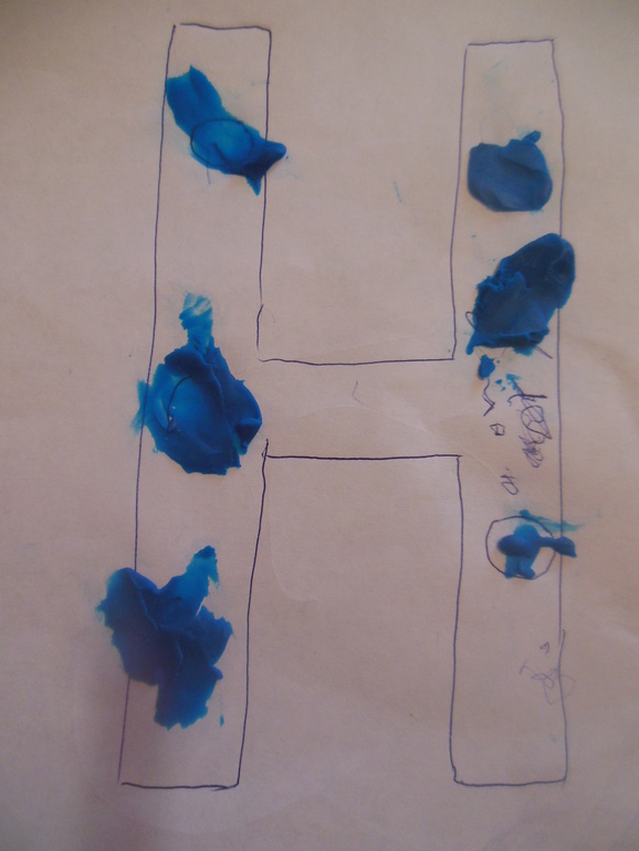 Я вылепила из кинетического песка,а потом рядом хотела выложить букву Н из мозаики,но дочка решила ,что нужно украсить буковку.Вот!