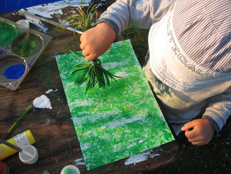 Когда работа была закончена я предложила ей узнать, как на самом деле в древности красили ткани (это описание из 5 номера журнала Моя мама Василиса мы не читали). Мы прочитали как это делается и покрасили белый хлопчатобумажный платочек луковой шелухой. Получился насыщенный оттенок коричневого цвета.