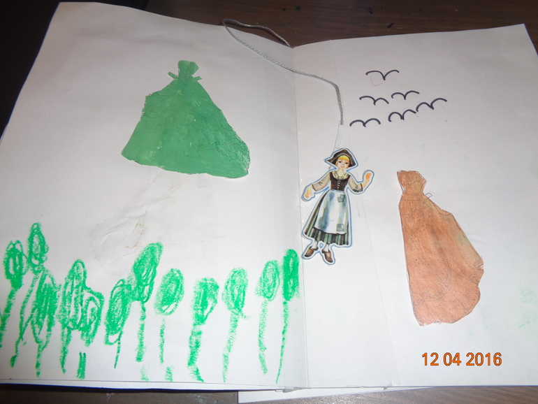 Вот и готовы все платья. Мачехе и сестрицам так понравились платья, что решено было взять Золушку на балл! Золушка так любит танцевать!"