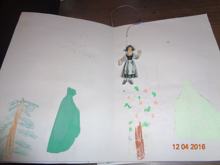"Золушка растерялась и расстроилась: как же можно сшить платья из цветов, которых ни у кого нет? Золушка горько плакала и тут ей пришло послание от ее крестной (а мы помним, что крестная Золушки была волшебницей). «Дорогая Золушка, я знаю о твоей задаче, и я помогу чем смогу. Но сама я приехать не смогу (у меня очень много важных дел) и к тебе на помощь я отправляю своего ученика. Он не волшебник, он только учиться, но его доброе сердце, любовь к тебе и его волшебная палочка тебе помогут. Я знаю, дорогая крестница что ты умная, находчивая и работящая. ты справишься! Удачи тебе!»