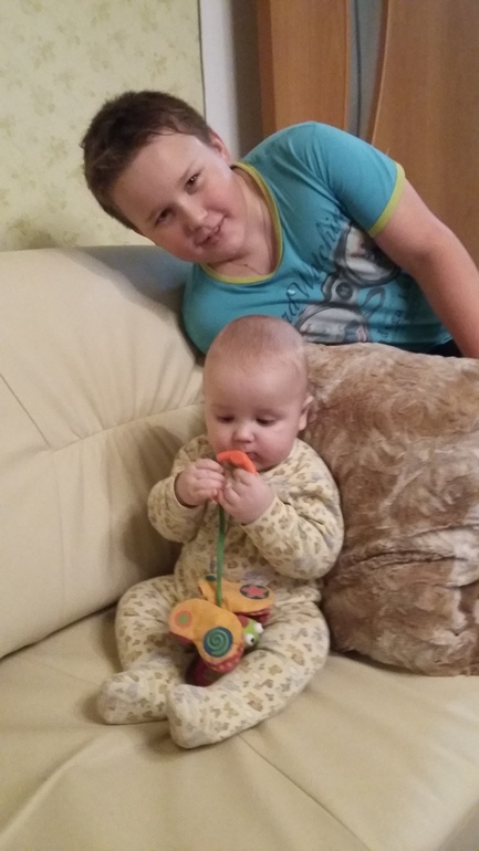 Так славно провели сегодняшний день) Даня занимался Костиком (водил, играл с ним, помогал держать бутылочку во время кормления, следил за ним). А я немного отдохнула)))) Ну и бабушка успевала заниматься обоими внуками. С одним в футбол мягким Икеевским мячом играть, с другим няньчиться))