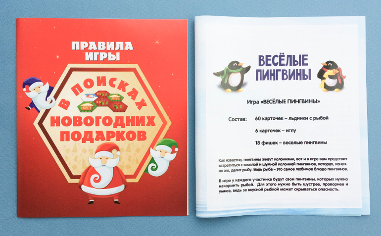 + толстый картон, т.е. карточки плотные (но у дедов морозов в игре выше - ощутимо плотнее, сравнение на фото ниже)