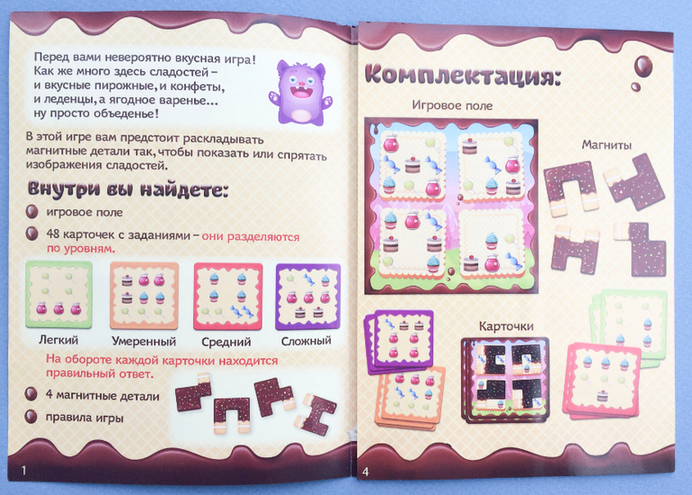 + Качество самих компонентов на уровне - хорошая толщина карточек, проживут не полчаса. У оригинала Djeco (но руками сравнивала качество с Мистигри, т.к. наши гримасы запакованы и все еще ждут своего часа в подарок) толщина картона такая же, под пальцами разница не сильно заметна - у Djeco чуть плотнее, и все.
