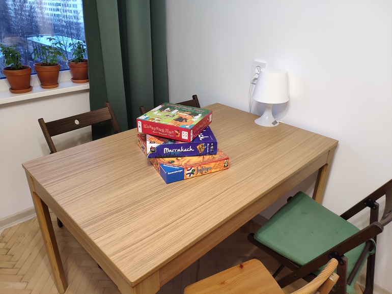 Вот и подходит к завершению наш ремонт, и настольные игры медленно, но уверенно возвращаются в нашу жизнь. Теперь у нас есть стол, за которым удобно играть,