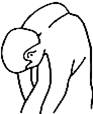 Больной садится на пятки и сгибается «ёжиком» так, что голова упирается в колени и в пол, верхняя часть туловища лежит на бедрах. Руки вытянуты назад, кисти лежат рядом со стопами ладонями вверх. Из этого положения пациент делает глубокий вдох, направляя его в зону блокированных ригидных сегментов. Как будто ёжик выпускает в этом месте иголки. Прием выполняется 5-7 раз.
