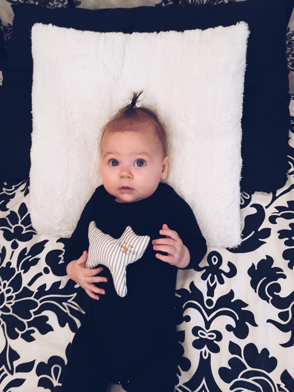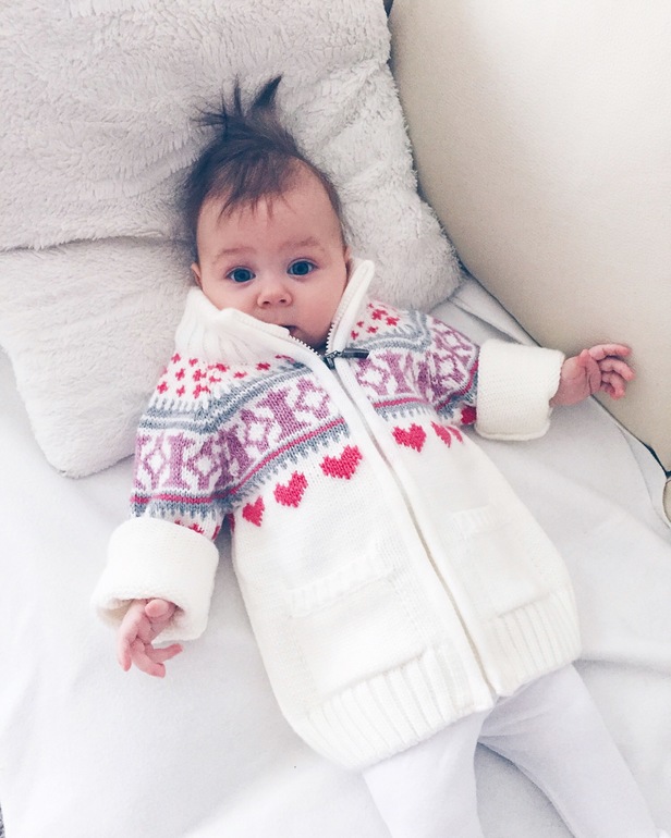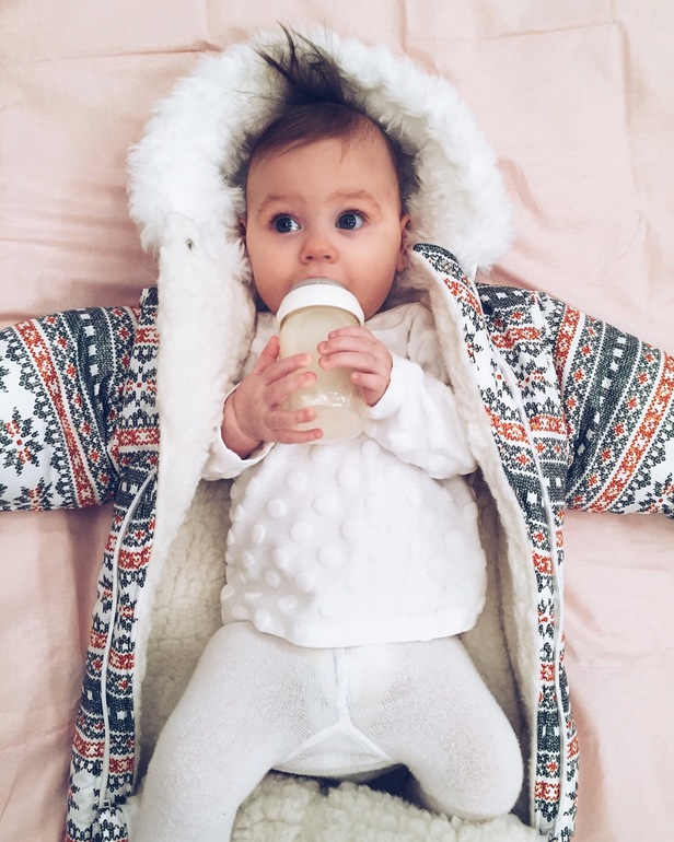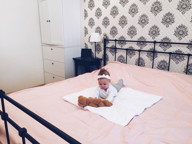 Вес в 5 месяцев был 7550 и рост 68. Доченька умеет переворачиваться на животик и обратно на спину, 2 раза сама села с положения лёжа на спине👍🏼👍🏼👍🏼первый раз села в 4 месяца и 3 недели:) ползёт назад, а не вперёд 😝 очень сильные ручки, хватает так что взрослым не выпутаться, маленькая силач сломала уже 2 погремушки, папа очень гордится этим 💪🏼🏆😆, зачем то кладёт язычок то на один бок, то на другой и жуёт🤔, говорит нам мама и баба, а папа ей все: да не баба, а папа 😂😂😂, к 4-м месяцам отросли волосики так, что на хвостик набралось 😁, очень любит котиков, точнее их мягкую шерстку....щиплет их за морды и за жопы 😆, очень любит песенки и стишки про мышей 🐭🐭🐭😂другие животные не вызывают такого восторга 😏 начали вводить прикорм в 5 месяцев, за 2 недели ввели брокколи, морковь, яблоко и грушу 🍏🍐🍴🍼. Кушали мы без режима, как захочется...пытаемся перейти хотя бы на 5-6 разовое питание...доченька спит всю ночь, часов без ночных кормлений, так она решила сама ещё в 1 месяц, так что я счастливая высыпающаяся мама💃🏻поэтому режим сейчас у нас такой: 7.30/8.30 завтрак (грудное молоко🍼), 10.30/11.00 ланч (фруктовое пюре 30-40 гр🍏🍎🍐🍌🍑🍍🍇🍓🍒🍊🍋🍈+грудное молоко🍼), 13.00/14.00 обед (овощное пюре 150 гр🍅🍆🌽🍠), 16.00/17.00 полдник (грудное молоко🍼), 18.30/19.00 ужин (грудное молоко🍼), 19.45/20.30 купание🛀🏻💦 с неболейкой (очень хвалят, говорят прям всю зиму без орви можно прожить), 20.00/20.30 вечерний перекус перед сном (грудное молоко🍼) и спим всю ночь без просыпаний. В перерывах между кормлениями пьем чаек: ромашковый/шиповник/мелисса и липовый цвет🌺. Вводим прикорм, думаем ну вот..будет теперь минус одно кормление грудью, обед из овощей, а у меня побольше времени личного..фигушки примерно через раз нам нужна после обеда обязательно сися! Никакой чаёк или молоко из бутылочки, именно сися😅ну как так?
