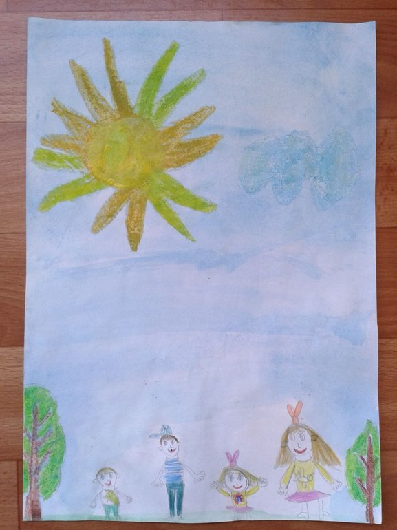 МагазинДрузья! Мы рады приветствовать еще одного участника нашего конкурса. Автор рисунка Ульяна (5 лет). Свою работу она назвала: "Наша семья на прогулке".