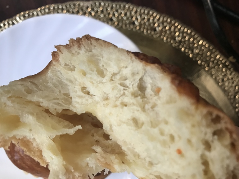 И сыр внутри. Сыра очень много. И его добавляют сразу в тесто, а не как начинку. И булочки внутри пористые .