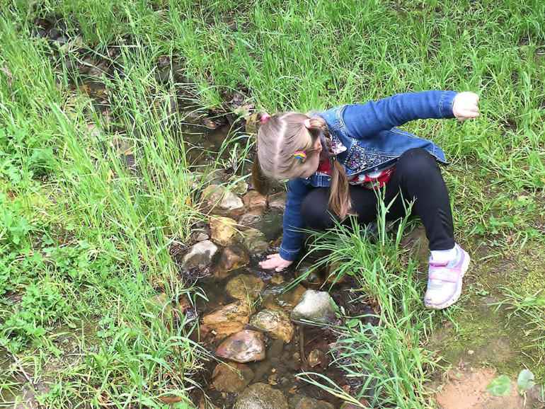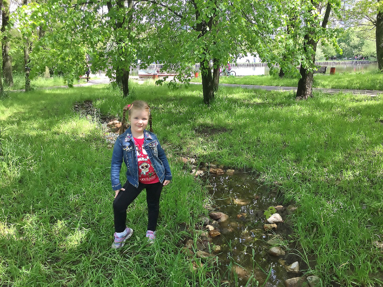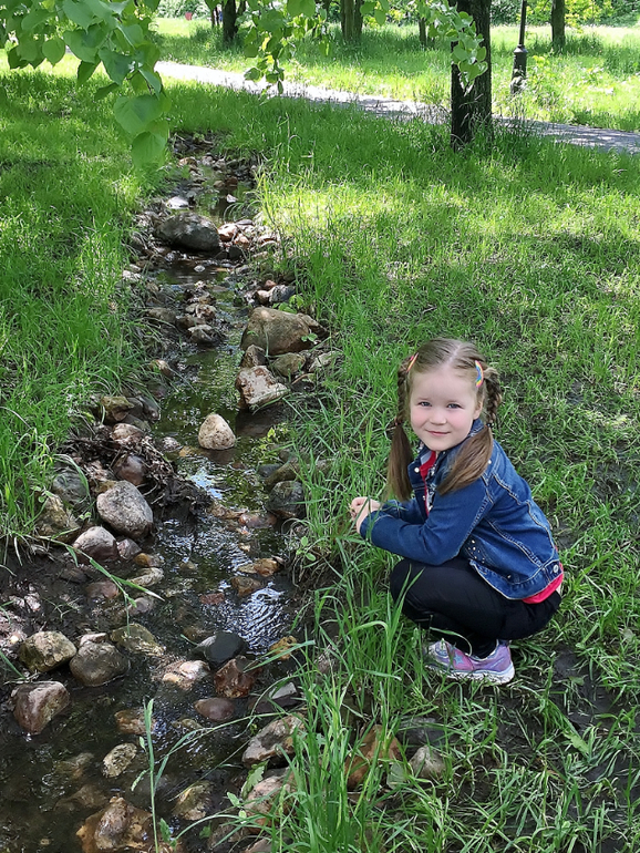 народу много, дети резвятся на площадках. думала моя клаванага тоже проситься станет, но нет. мелочь нашла себе забаву - дренажные канавы) полтора часа ковырялась в них