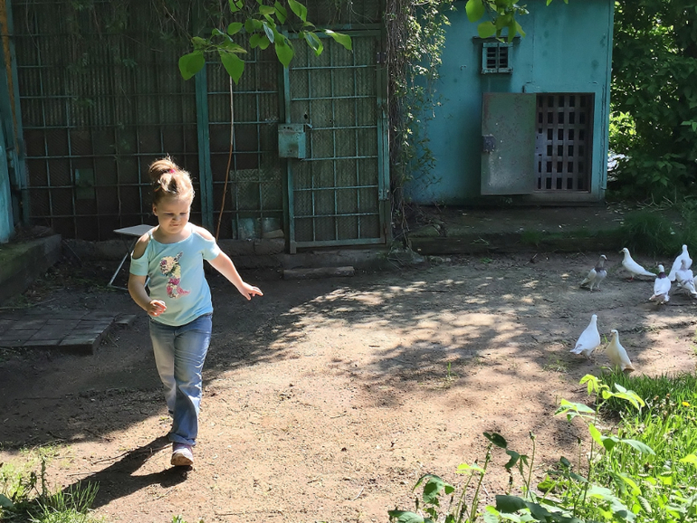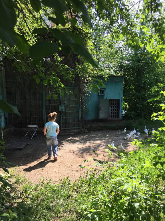 в воскресенье ходили гулять с сестрой и мелкой, нашли голубятню. Ева сунула туда нос и быстренько сбежала - мама, в этом курятнике воняет)