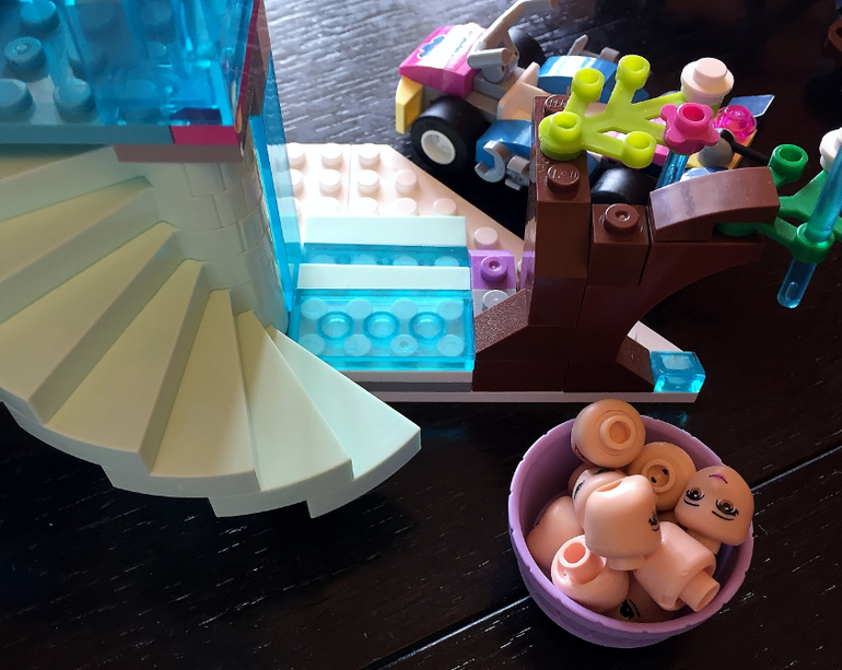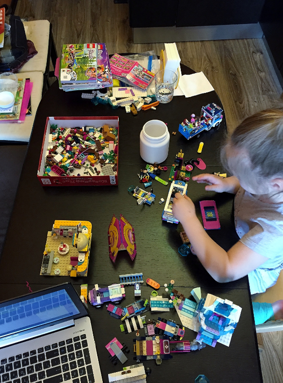 вчера Кот ездил переобуваться и я в ультимативной форме всучила ему Евию, нужно же квартиру в порядок после выходных приводить! а дочь обожает наблюдать разную деятельность. мы постоянно тормозим и смотрим как работают разные машины и механизмы, на стройку она может смотреть полчаса точно, потом уже ее утаскиваю. так вот вчера Евинька насмотрелась, а сегодня играла в шиномонтаж))) достала все свои леговские машинки, соорудила мастерскую, колеса у нее штабелями, мастер с гаечным ключом)