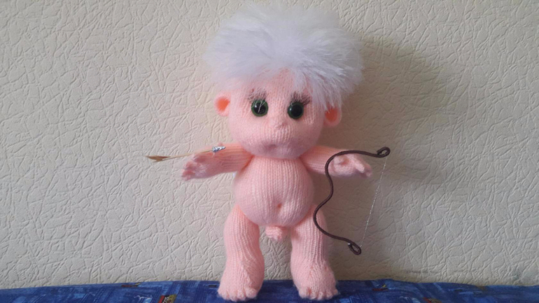 Как же быстро летит время?! Только, только готовились встретить Новый год и вот уже скоро день Святого Валентина. К этому празднику я связала, первый раз, вот такого Купидончика. Как вам?