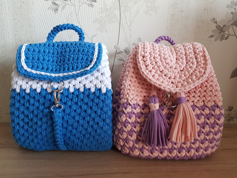 Совсем недавно увлеклась вязанием из трикотажной пряжи. Меня это просто затянуло. Уже связано два рюкзака и тапочки. Вся прелесть в том, что уход за этими вещами прост - сунул в стиральную машинку и готово.