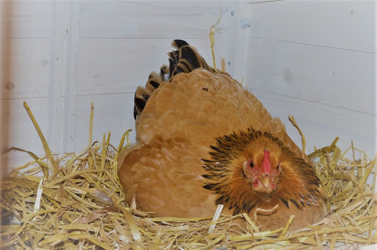 Шанель вообще не наседка. Она, как наглый бройлер, всё бегает, клянчит вкусненькое и гоняет нашу кошку.