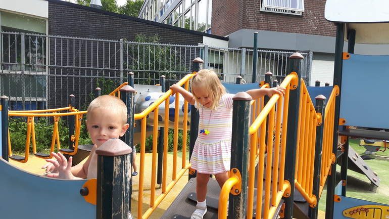 В хорошую погоду они ходят на площадку рядом со школой. В прошлый четверг устраивали там праздник для малышей и их родителей. Белла всё время контролировала меня, чтоб я вдруг не ушла ))