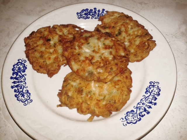 От себя добавлю, сыра лучше побольше, но тогда солить много не надо. И кабачок у меня был один, яйцо тоже одно положила и муки 6-7 ложек получилось, петруха сушеная. Ели просто со сметаной.