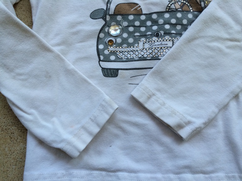 Есть пятна - видно на втором фото. Фара на машинке справа была пришита.