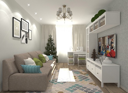 Дизайн трех-комнатной квартиры для молодой семьи с маленькой дочкой, где мама рукодельница.