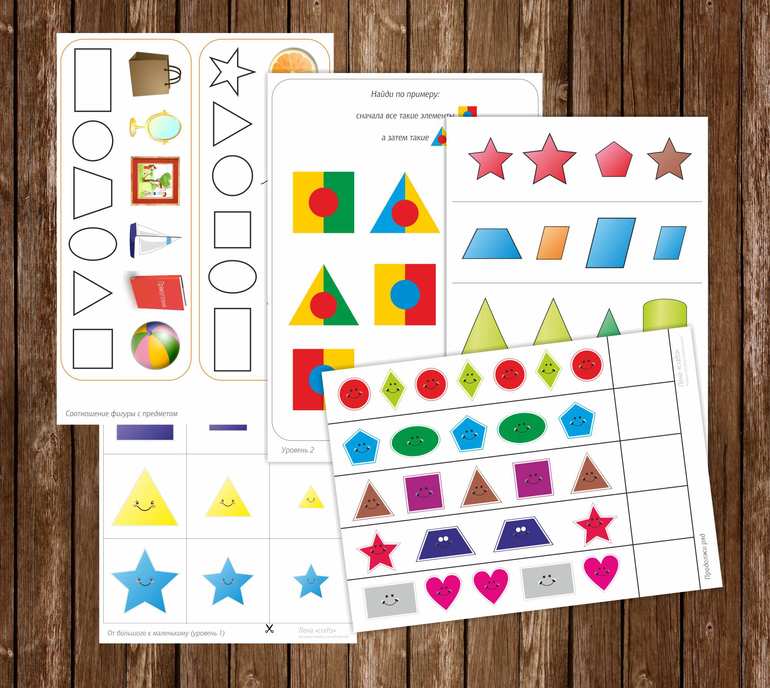 В принципе - это стандартный набор для занятий, в том числе по любимому методу "Шичида", где в главных ролях "выступают" геометрические фигуры