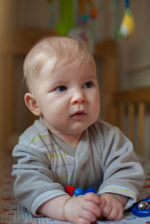 а Гошке тем временем уже 4 месяца, за последний прибавил почти кило, вот только переворачиваться не желает, лентяй=)