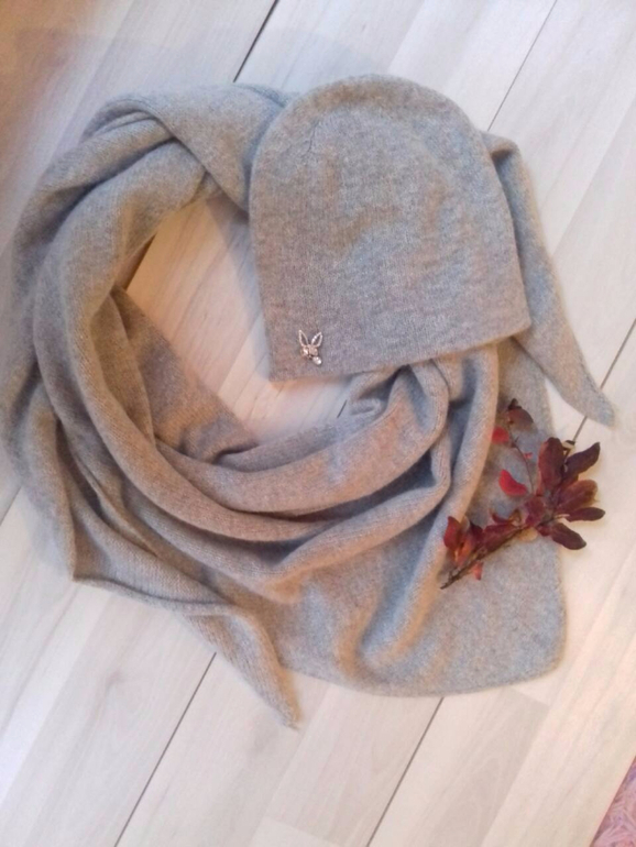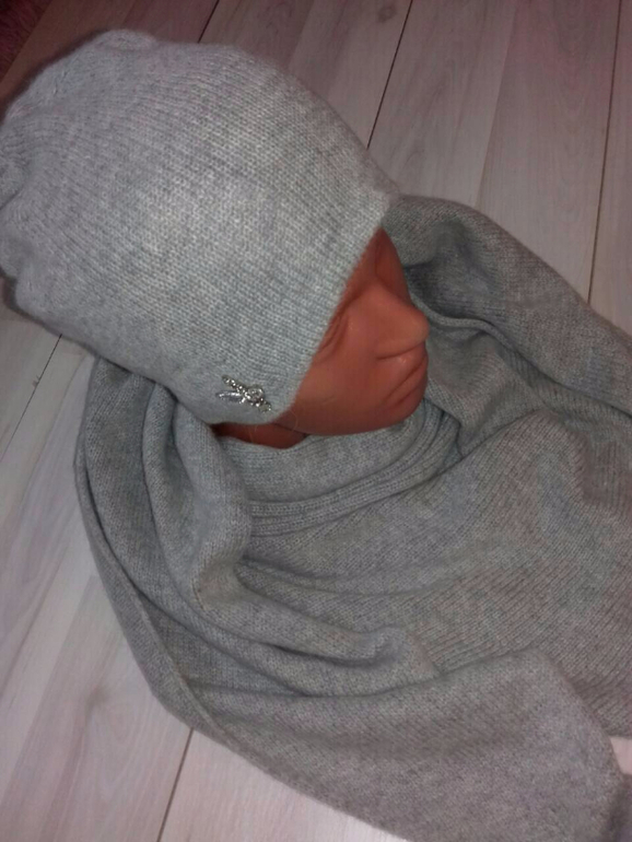 Часть сентябрьских работ . 1 комплект платок и шапочка из альпаки с кашемиром . Шапочка двойная . Кардиган рукава и карманы выполнены изнаночной стороной швами наружу . Платок серый меланж из 100% мериноса очень актуален этой зимой . Шапочка розовая детская двойная бесшовная расшита кружевом и бисером со стразами .