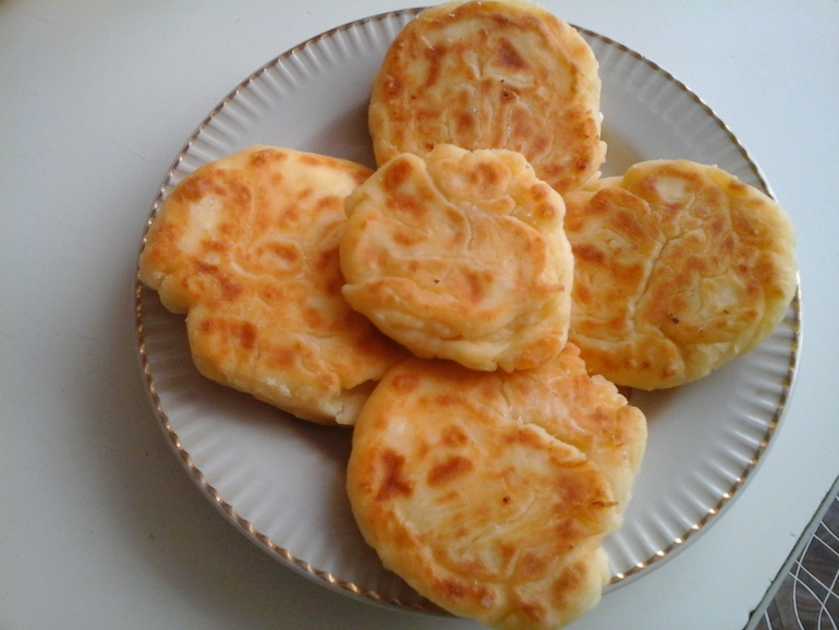 Разогрела сковородку с каплей оливкового масла(капнула немного масла и кистью распределила его по всей сковороде), выложила получившиеся сырнички и жарила с двух сторон до золотистой корочки.