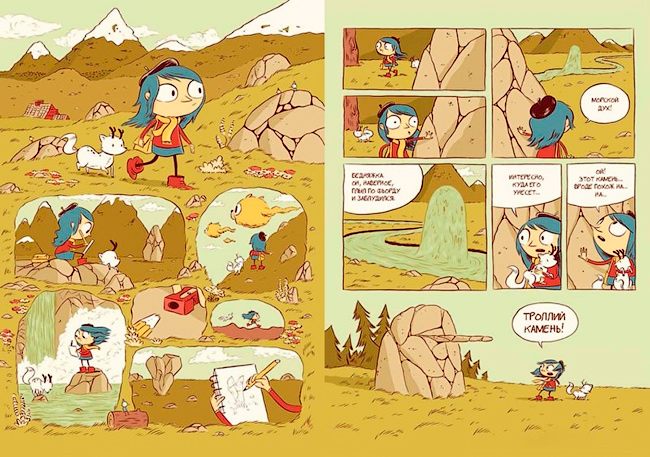 И иллюстрацие здесь такие размашистые, крупные и яркие. Такие, которые и скучать не оставят, и дадут повод додумать и дофантазировать.