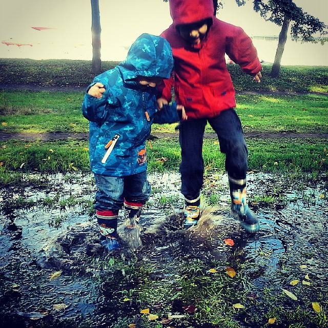Мои монстрики!Никогда не запрещаю сыновьям бегать по лужам, валяться на земле, барабаться в любых водоемах и вообще радоваться детству на полную катушку!