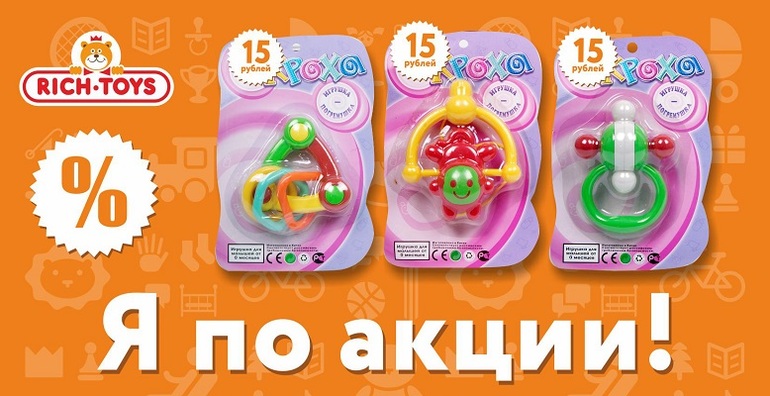 Сюрприз для самых маленьких, а также их родителей: погремушки по рекордно низкой цене. Погремушки «КРОХА» сейчас в продаже по 15 рублей, цена на них снижена более чем в три раза! Это полезные вещицы, которые всегда пригодятся в семье с маленькими детьми, не забудьте приобрести!