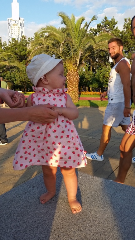 В начале июня мы переехали на дачу до конца лета, а с дачи уже уехали в Грузию. Сначала в Тбилиси на 4 дня и затем в Батуми, на море. Мы еще тут. Нам все ужасно нравится :) Иногда мне кажется, что я слетела с катушек, притащив такую кроху сюда. Но нам тут хорошо, всей семье, и ей с нами тоже. Старшую я до 3х лет не вывозила на море. Берегла ее и свою нервную систему. (Хотя она была спокойная и с ней можно было хоть в Мапуту.)А тут с двумя детьмя собралась и шлю приветы из Алазанской долины. Все соседи по даче были в шоке, когда узнали, что мы уезжаем и куда! и сочувствовали нам.