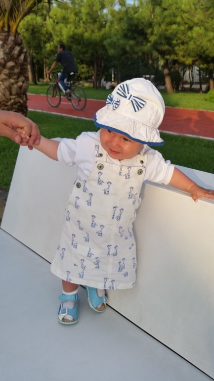 Местные очень любят детей. Ей столько внимания, она всем сторит глазки, очень общительная девочка наша. Но ни к кому не идет. Вообще мамкина дочь. За мной ползет в туалет. Ох!
