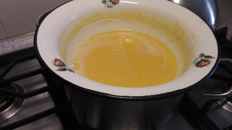 3. Поставить на водяную баню и варить, постоянно помешивая, до загустения. Снять и охладить