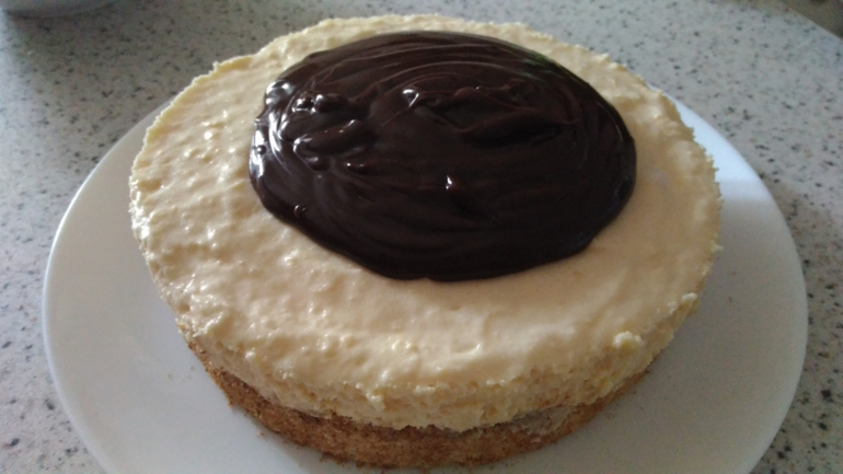 Торт освободить от формы. Я провожу шпателем по краям. Вылить сверху глазурь и сделать или подтеки, или как у меня полностью покрыть торт