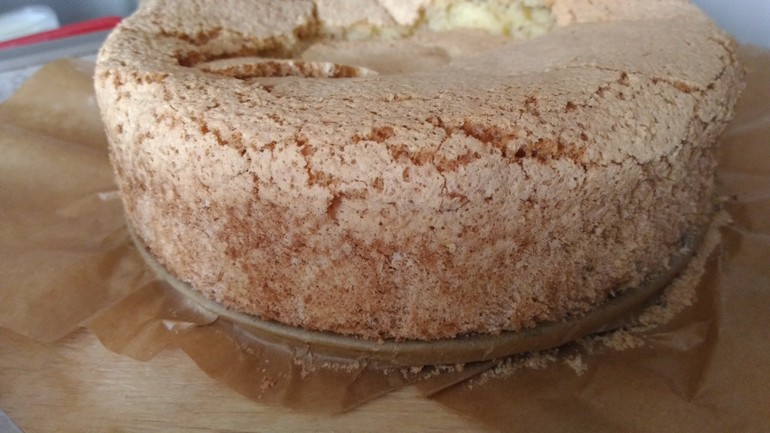 4. Достаем из духовки, охлаждаем. Достаем из формы и режем на два коржа. У меня на один получилось только