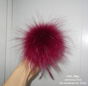 Помпоны #071, #075 и #076 выполнены из одной шкурки натуральго окраса (по цвету одинаковые), из самой её густой и перьевой части. Помпон #075 с яркими перьями, как и #071. Больше перьев уже никак не получится - я шкуры не растягиваю, поэтому вся густота и красота меха в помпонах.