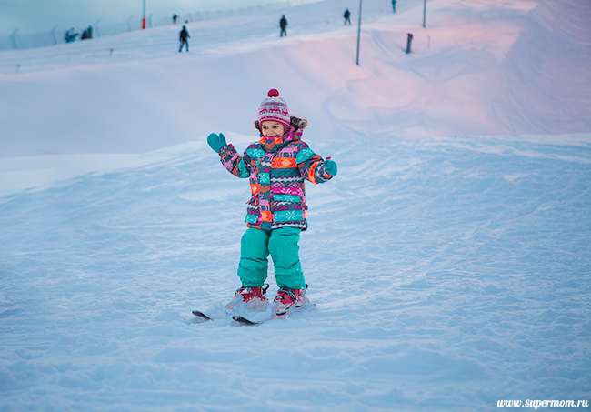 Сейчас она занимается с инструктором раз в неделю, еще 1-2 раза мы приезжаем на горнолыжный склон просто так, для поддержания интереса, он находится почти рядом с домом, поэтому мы просто заруливаем туда после детского сада.