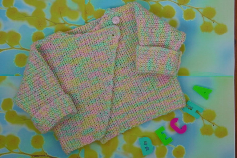 Это настоящий ХИТ - жакет связан в форме распашонки - очень удобная модель для вашего малыша. Застегивается на две пуговици. Швы очень мягкие - боковые . Связан одной деталью.