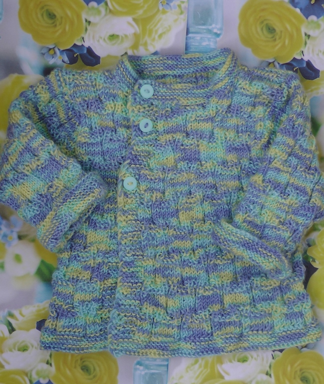 Очень комфортный, связанный узором "корзинка", станет для вашего малыша незаменимым для прогулки. В хмурое утро или прохладный вечер такой жакет просто необходим вашему ребёнку:)