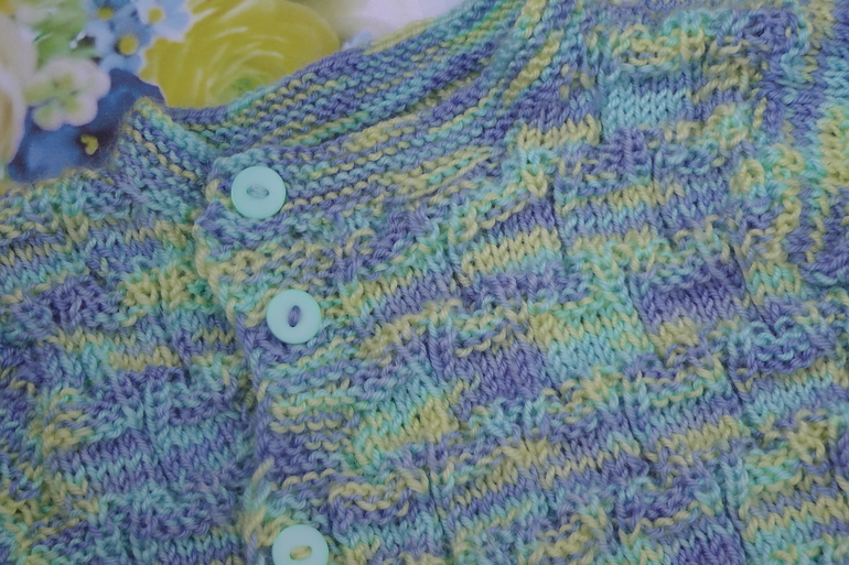 Жакет связан в форме распашонки - очень удобная модель. Испробована на своей малышке. Застегивается на две пуговицы. Швы очень мягкие - боковые . Связан одной деталью.