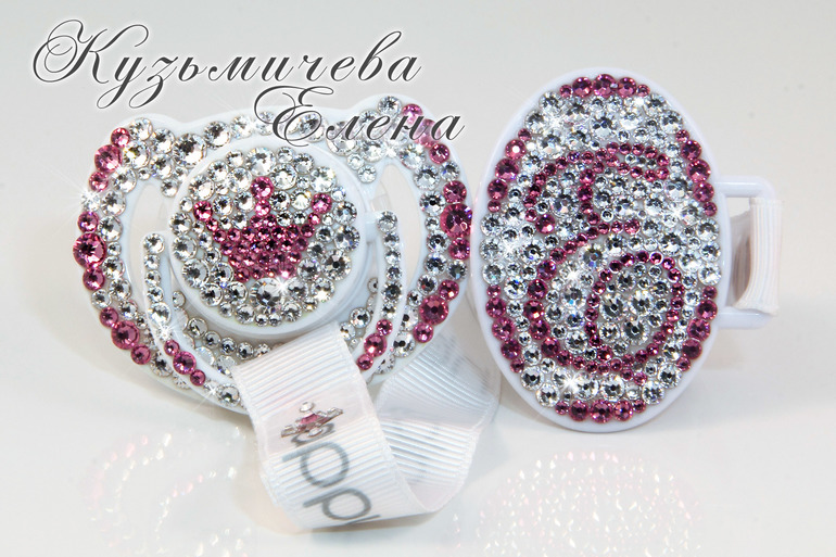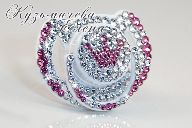 Пустышки AVENT с кристаллами Сваровски - это прелестный и оригинальный подарок на рождение малышки, который безусловно порадует и маму! С такой соской Ваша принцесса может блистательно дефелировать на прогулке или Вы можете использовать ее для красивых снимков во время фотосессий. А когда девочка подрастет, эта ослепительная сосочка станет для нее приятной памятной вещицей из детства. При работе с кристаллами используется очень надежный клей. Но тем не менее мы не рекомендуем использовать такую пустышку в качестве единственной или основной и тем более не допускать, чтобы ребенок длительное время грыз соску. Ополаскивать кипятком можно.