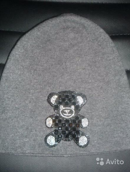 Продам новую шапку с мишкой в стразах, стразы очень красиво переливаются. Приклеены намертво. Шапка двойная, 50% шерсть, 20% кролик. 800руб.