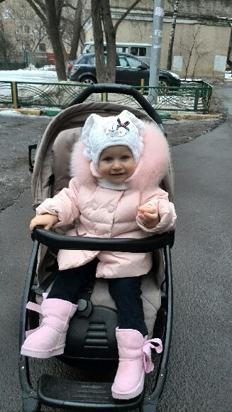 очень теплая и красиво смотрится на ребенке, размер 18м. верх из плотного материала, зацепок не ставится. носили с пуховым высоким полукомбинезоном Aviva. можно носить до 90см - 5500Елена