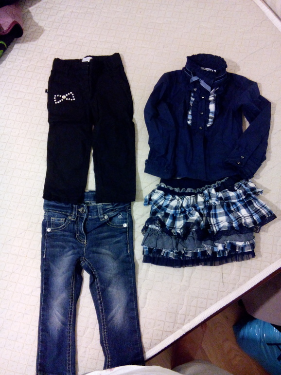Джинсы беннетон,новые хорошо с года до двух-600 руб;брюки Польша 80-86,новые-500 руб; костюм artigli одет один раз 700руб; почта +150