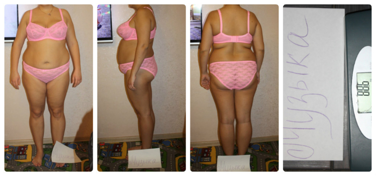 Объемы на старте и на финише (объем под грудью, талия, живот, бедра) по желанию грудь, нога, рука