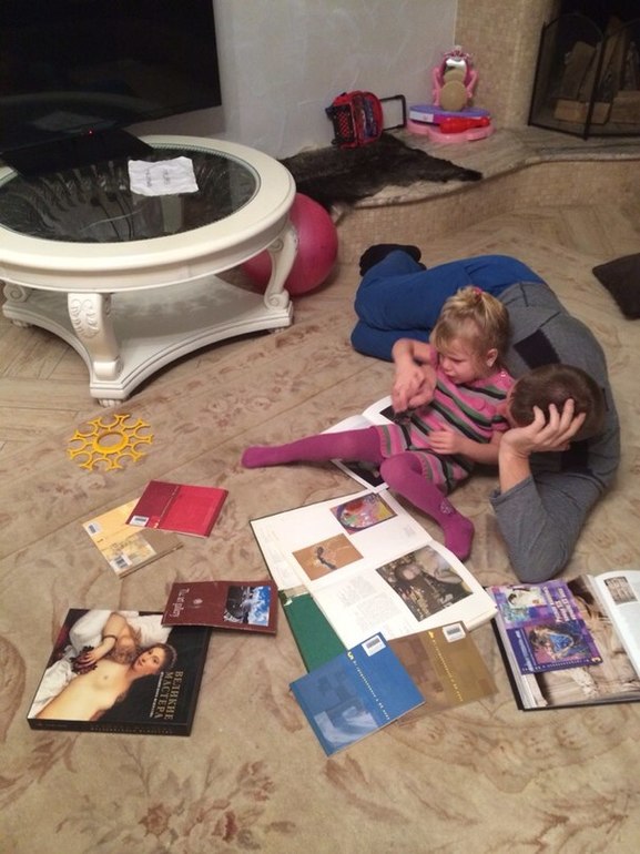 И только я хотела начать рассказ о том что - давным-давно жил такой человек.... Подключился наш папа, голосом Куравлёва заявил "Царь Иван Васильевич" и начал ржать! Занятия были 3 минуты, и тут же закончились и началась веселая возня с папой!
