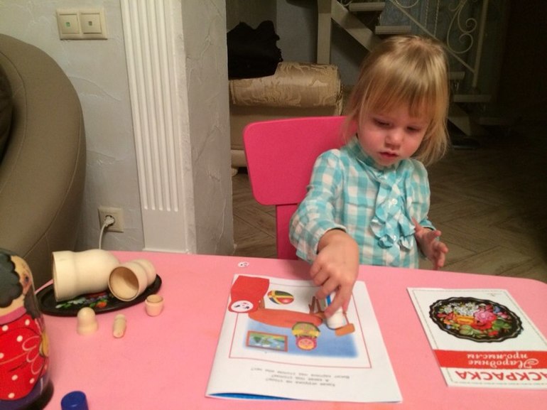 Я расстроилась что Соню не заинтересовало самой сделать/раскрасить настоящую матрешку (такой классный набор из 5шт), и то что опять все не доделывает до конца, не полностью раскрашивает, пластилин не "доразмазывает" и др.