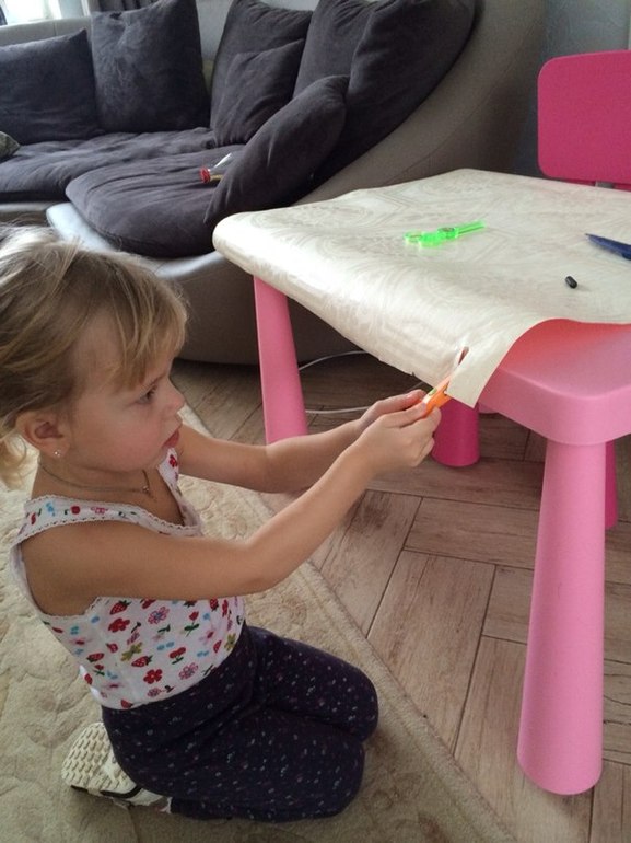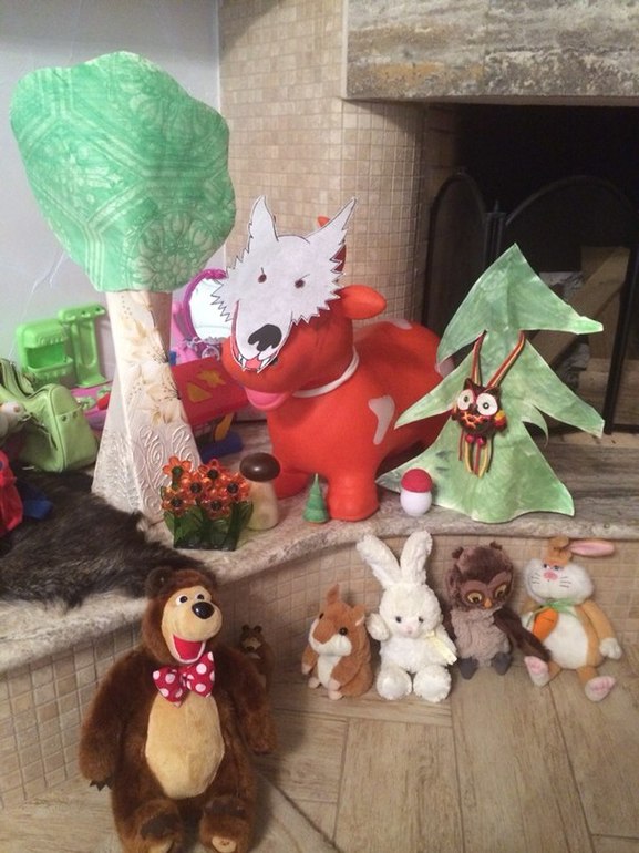 19:00 - делали книжку для кукол - аппликация, шнуровка. Читали (рассказывали) её папе - своя интерпретация Красной шапочки в купе с колобком))) (Андерсон нервно курит в сторонке) ~ веселились больше часа!