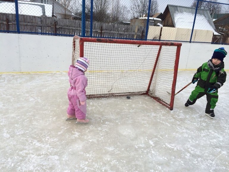 Постояли на воротах - не понятен нам этот хоккей, еле от шайбы увернулись)))