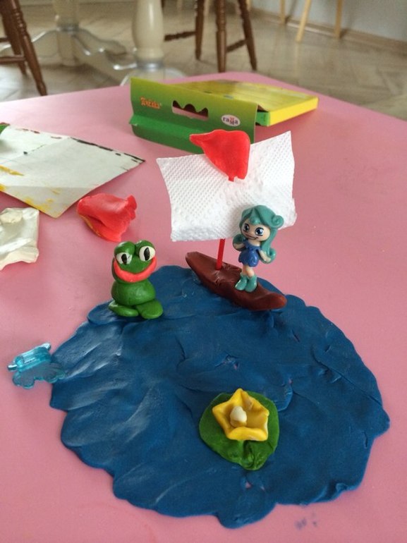 - сделали озеро из пластилина,